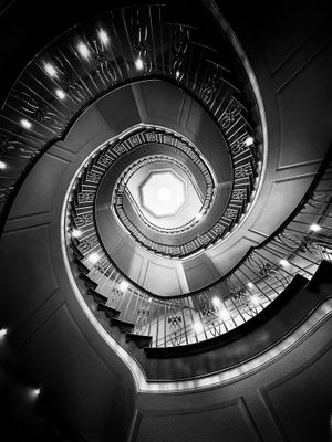 Light rises. The spiral staircase inside Fortnum & Mason, illuminated from above and captured from below. Spiral of Light reveals the quiet geometry of the space — the sweep of the curve, the rhythm of the railings, and the soft glow that draws the eye inward. A study in movement, balance, and ascent.