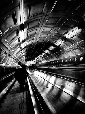 A long descent, softened by repetition and light. Captured deep underground, this image traces the quiet rhythm of movement — figures reduced to scale as architecture takes the lead. A moment suspended between arrival and departure.
